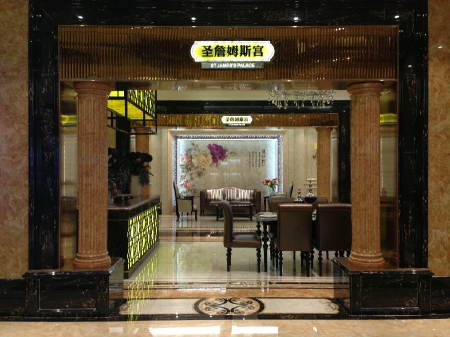 在導購員的帶領下,我走進了圣詹姆斯宮。據說,圣詹姆斯宮是倫敦歷史最悠久的宮殿之一,與英國其他王宮不同的地方是,圣詹姆斯宮是以紅磚建造,并不宏偉,是典型的英國都鐸王朝時代的建筑。英國王室不少歷史人物都曾經在這所王宮內生活過,其中包括博林、伊麗莎白一世等。格萊斯紳士生活館里面的圣詹姆斯宮,其設計以柔和的淡黃色作為主色調,開放式的廚房,深啡網吧臺散發著英國傳揚而來的悠閑氣息。餐廳里,鎢鋼做成的燈框透出淡淡的暖黃色,照在了石材紋理的地磚上。磚面反射著淡淡的燈光,增加空間的亮度和照明的層次感。莎安娜米黃的紋理自然隨性,黃色調之中蘊含著一些灰色,看不出半點人工雕琢的痕跡,真是餐廳首選的產品。