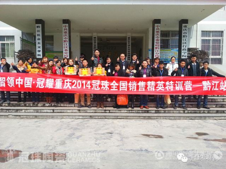 在第一站貴州銅仁,來自遵義和銅仁總店及其分銷商共40名學員參加了培訓。銅仁冠珠曾總感言:“感謝總部給我們的幫助。此次培訓意義重大,公司開年第一站放在銅仁,給了我們強大動力的同時,也讓我們有了相當大的壓力。我們一定要認真學習,學以致用,提升業績!”在重慶涪陵站,來自涪陵、長壽、酉陽、秀山、彭水、武隆的近40名學員參加了培訓。西南區區域經理馮建周對學員們說:“只要是冠珠的客戶,不管大小,都是我們的合作伙伴,都是我們的衣食父母,我們有理由服務好,并會給與更多的關注!相信通過你們的努力,肯定能讓冠珠陶瓷在當地成為非常知名的品牌。”涪陵冠珠王總更是以身作則,主動給大家講解促銷技巧,贏得在座經銷商和導購精英們的一致認可。在重慶黔江站,黔江冠珠吳總說到:“此次培訓就像是下了一場及時雨,讓重慶地區經銷商能在3.15之前儲備能量,為打一場漂亮的翻身仗而儲備充足的能量。感謝市場部能和我們一起并肩作戰!”尤其值得一提的是,黔江站培訓結束前,每一位學員都寫下了3.15促銷活動“軍令狀”,承諾3.15成交單數,保證拼盡全力完成任務,絕不找借口,充分展示了培訓后的滿滿自信。