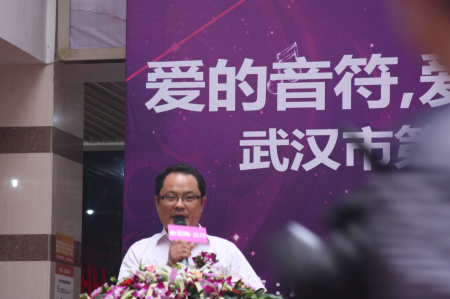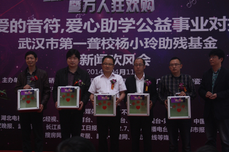 武漢市硚口區(qū)政協(xié)副主席、硚口區(qū)工商聯(lián)主席、區(qū)總商會(huì)會(huì)長、法學(xué)博士李光先生,武漢市硚口區(qū)委統(tǒng)戰(zhàn)部副部長 曾憲濤先生,南國大武漢家裝總經(jīng)理?xiàng)畈ㄏ壬,武漢硚口區(qū)工商聯(lián)常委、金意陶·瓷磚總經(jīng)理、武漢綠色聯(lián)盟會(huì)長葉國強(qiáng)先生等領(lǐng)導(dǎo)為“愛的音符”愛心助學(xué)公益事業(yè)對援武漢市第一聾校楊小玲助殘基金啟動(dòng);