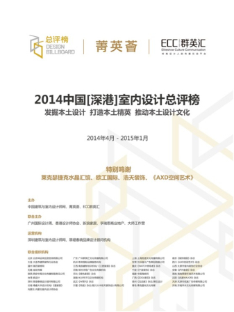 中國(深港)室內設計總評榜,依托“設計之都”品牌影響力,立足深港設計文化圈,以“發掘本土設計新作、打造本土設計精英、關注本土設計趨向、推動本土設計文化”為宗旨的室內設計年度公益評選。它不僅僅只是一個設計賽事,它更希望去創造一種價值:從“學術、權威性及參與度”上打造多維度設計界交流活動。并將邀請深港本土上千位優秀室內設計師通過提交作品參賽過程,對參賽作品進行票選,參加室內設計分享會、藝術休旅、考察學習等多種形式共享本次賽事。活動周期從2014年4月啟幕將延至2015年1月。