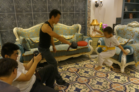 鏡頭一:在藍(lán)珀瓷磚“安納西”產(chǎn)品系列與“戛納” 產(chǎn)品系列實(shí)景間,功夫媽媽在這里展示他們的功夫家庭:媽媽與兩位女兒在陽臺(tái)上舒展妙曼身姿,呵護(hù)兩只雛燕精彩亮相,小女兒的一字馬,大女兒的下腰,均顯示出母女仨的不凡功底與實(shí)力;而在客廳,5口之家的爸爸與最小的兒子生龍活虎地練習(xí)著跆拳道招式,小小年紀(jì)卻已身手不凡;