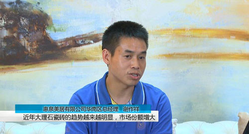 【主持人】:目前陶瓷領域,越來越多的陶瓷企業開始加入大理石瓷磚的生產和銷售,那么是否可以表示出市場需求量較大呢?終端代理商是有效搭建消費者和廠家的橋梁,那么首先問一下惠泉美居的謝總,惠泉美居作為流通領域的龍頭企業,攜手眾多知名品牌,那您所代理的品牌里面做大理石瓷磚的多不多?