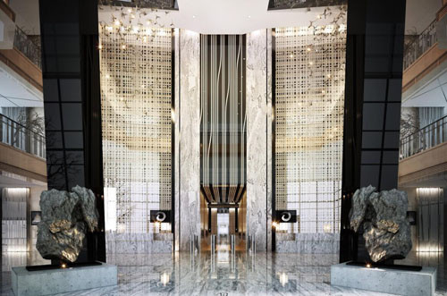 【陳于正】:青島紫玥酒店、東盟國際物流中心、可逸江畔等項目曾應用大理石瓷磚。大理石瓷磚跟天然大理石一起去用,天然大理石配合切面很有優勢,但是,當需大面積鋪貼的時候,就不是一般的石材廠家能提供完完全全統一的色板的。