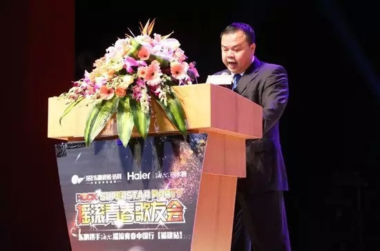 【圖為:三躍建材(福建)有限公司總裁肖文藝致辭,拉開歌友會序幕】