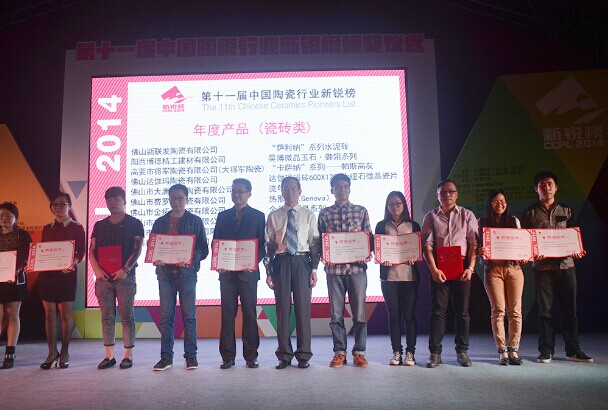 經過嚴格的評選,周密的策劃。號稱陶瓷行業的奧斯卡——新銳榜于3月28日晚揭曉獲獎名單。金艾陶瓷磚產品微晶石“爆晶系列”斬獲壓軸大獎瓷磚類“年度優秀產品”。