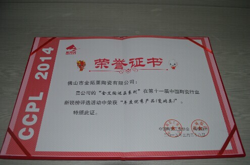 這項重量級的大獎,體現了金艾陶瓷磚在2014年的強勢發展。這也與金艾陶精工釉料、專注產品研發功不可沒。