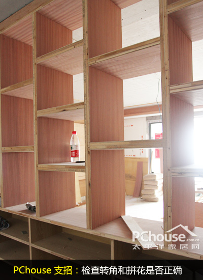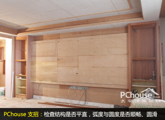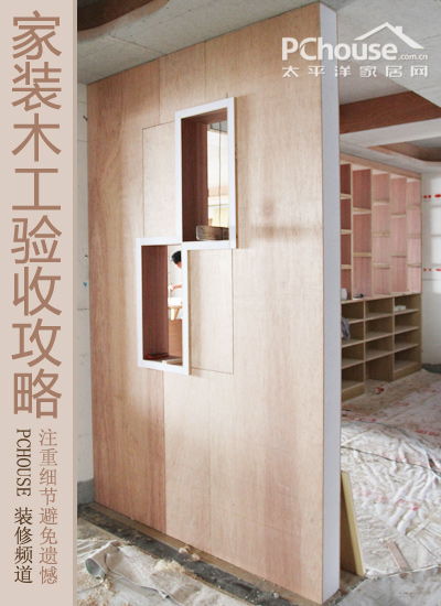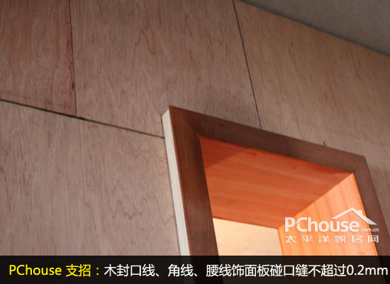 驗收時要看木封口線、角線、腰線飾面板碰口縫不超過0.2mm,線與線夾口角縫不超出0.3mm,飾面板與板碰口不超過0.2mm。