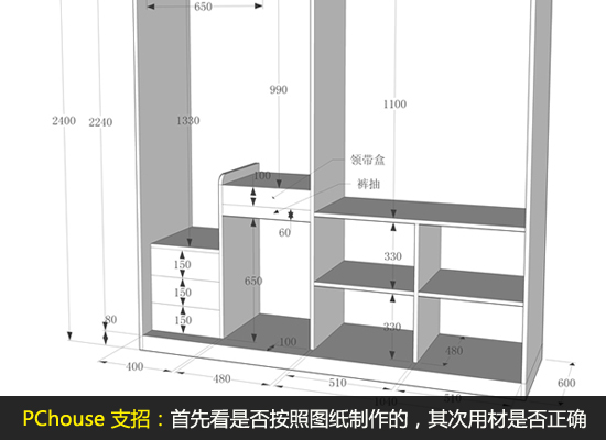 請木工現場制作家具,需要先做好家具的設計圖紙。驗收的時候首先看是否按照圖紙制作的,其次看材料是否選用的是規定的材料,有無以次充好的情況。