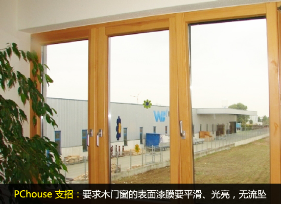 要求木門窗的表面漆膜要平滑、光亮,無流墜、氣泡、皺紋等質量缺陷,沒有腐蝕點、死節、破殘;包門窗套使用木材應與門窗扇的木質、顏色協調,飾面板與木線條色差不能大,樹種應相同。