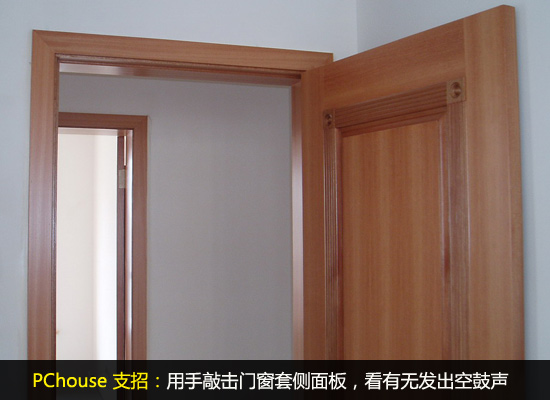 門窗套用細木工板或密度板制作時,應先將基層板固定在窗框基層龍骨上,再釘線條。用手敲擊門窗套側面板,如果發出空鼓聲,就說明底層沒有墊細木工板等基層板材,應折除重做。