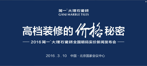3月10日,簡一大理石瓷磚也將于國家會議中心舉行“高檔裝修的價格秘密——2016簡一大理石瓷磚全國明碼實價新聞發布會”,屆時將邀請央視、南方都市報、新浪、搜狐、網易、騰訊、搜房等近40家權威媒體單位共同見證這一重大舉措。