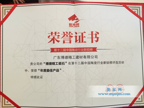據(jù)了解,參評(píng)本屆“中國(guó)陶瓷行業(yè)新銳榜年度產(chǎn)品”競(jìng)爭(zhēng)的品牌產(chǎn)品多達(dá)80個(gè),經(jīng)過(guò)一個(gè)多月的行業(yè)專(zhuān)業(yè)評(píng)委的甄選,最終評(píng)選出五個(gè)“中國(guó)陶瓷行業(yè)新銳榜年度最佳產(chǎn)品”,博德精工瓷石成為其中一員“佼佼者”。