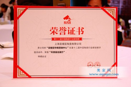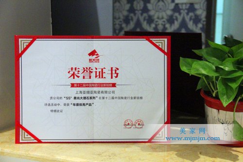 作為陶業成立最早的企業之一,亞細亞磁磚43年的創新和積淀,可謂有目共睹,從第一片立體藝術磁磚到第一片一次燒內墻磚再到第一片55°柔光大理石,還有亞細亞華南首家磁磚藝術體驗中心,亞細亞引領了一個又一個風潮。亞細亞負責人表示,此次獲得年度最佳展廳和年度優秀產品的嘉獎,是行業權威機構對亞細亞的肯定,亞細亞人也深受鼓舞,在未來一定會繼續為行業、為消費者帶來更多更好的產品和體驗。(通訊員:章程)