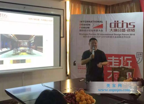大唐合盛瓷磚信陽營銷中心總經理劉杰作為主辦方代表在活動現場向與會設計師致歡迎詞,而CIID信陽專委常務副主任、信陽室內裝飾協會執行會長熊鴻在會上表示,真誠地希望信陽設計師積極參與2016IDF國際設計論壇年度大會和“走近大師”系列活動,借此平臺走出信陽,走向世界,為信陽設計界貢獻自己的一份力量。此次活動高潮疊起,信陽資深室內設計師、CIID信陽專委主任、信陽室內裝飾協會設計委主任扶凡,CIID信陽專委委員岳松現場分享設計理念及代表作品,得到現場設計師的高度認可和贊賞。