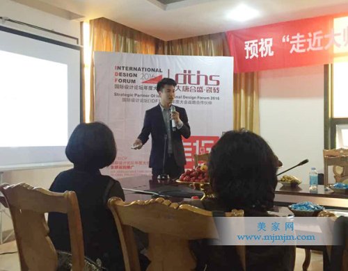 大唐合盛瓷磚信陽營銷中心總經理劉杰致歡迎詞“走近大師”是2016IDF國際設計論壇年度大會、廣州設計周聯合大唐合盛瓷磚共同推出的系列設計師推廣活動。旨在為更多的設計師們搭建一個與大師對話的平臺,是一次知識碰撞,交流與激發靈感的絕佳機會;“走近大師”聚集中國各地設計行業的精英,激發碰撞出更具時代感更符合社會潮流的室內設計理念,為中國室內設計界帶來更多新文化、新理念、新力量。