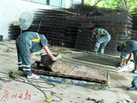 昨天,記者來到火燒崗垃圾場,該廢舊家具回收處理中心占地3200平方米。“目前,我們處理的廢舊家具主要為舊皮革沙發、廢舊床墊,扔掉的主要是一些廢舊皮革沙發,廢舊床墊,大多數來自城中村,因為這里城中村人口流動快。”該中心一位負責人告訴記者。據統計,從5月11日~30日,該中心共處理廢舊沙發883張、床墊1012張、衣柜53件、桌椅94件、其他類74件。“目前,該中心有12名工人,一個工人一天大約可以處理12張舊床墊。”該負責人表示。