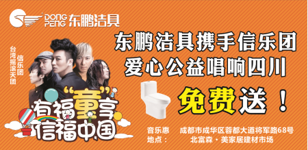 公益與鉅惠同行,加入東鵬潔具公益合伙人,購潔具-做公益、買優(yōu)惠-獻(xiàn)愛心,7月30日在成都-北富森家居建材城,信樂團(tuán)搖滾Live嗨翻蓉城!詳詢:東鵬潔具四川省各大門店!
