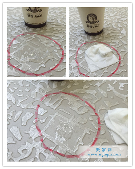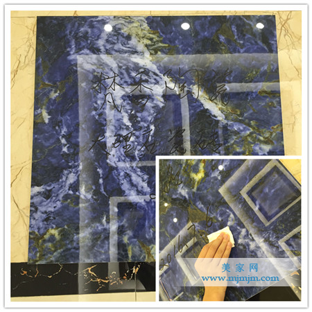 瓷磚的防污性,對(duì)于瓷磚的美觀性很重要,防污性能差,就是瓷磚的耐用性差。測(cè)評(píng)員在瓷磚上用油性筆寫下瓷磚的品牌,靜置了幾分鐘,再拿干紙巾擦拭,瓷磚上幾乎不留痕跡,說明梵香通體大理石瓷磚的防污性能不比大理石瓷磚差。