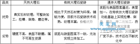 由于目前通體大理石瓷磚相較于其他產品生產成本較高,其產品的主推市場是以滿足中高端消費需求為主。但有專家表示,如果通體大理石瓷磚這項技術一旦成熟,而且具有成本優勢,質量優勢,那么風行一時的拋釉轉將成為過去.取而代之的是拋光磚的卷土重來.