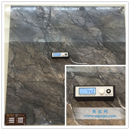 每塊瓷磚的光澤度都是不同的,美家測評員用光澤度儀器測試帥陶光澤度為74,通體大理石瓷磚擁有最真實的石材光感,深色通體大理石磚面采用4D高清數碼絲控技術,紋理清晰、逼真。