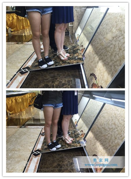 瓷磚的抗壓性指的是瓷磚的破壞程度。抗壓性能差,容易導(dǎo)致瓷磚在使用時(shí)出現(xiàn)開裂、斷裂等現(xiàn)象,也影響美觀。測評員先把瓷磚以斜撐的方式放置,然后我們找來了兩位女士一位男士,一起站立在瓷磚上,瓷磚也沒有出現(xiàn)開裂的現(xiàn)象。說明瓷磚的抗壓性非常好。