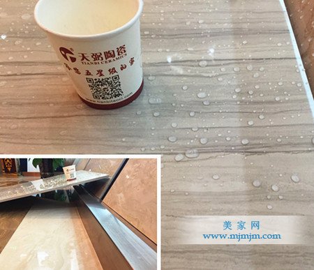 防滑性對于家中有老人和小孩的消費者來說,是重中之重。防滑性能差會使家居安全有潛在的安全隱患。由此,小編為廣大消費者測試這款全瓷大理石的防滑性能,在傾斜的瓷磚表面上灑滿水,然后把一個裝滿水的杯子立在上面,觀察幾分鐘,發現杯子并沒有在瓷磚上出現滑行的現象。說明全瓷大理石法國灰木紋的防滑性能值得信賴。