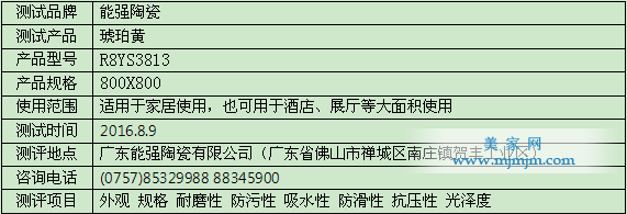 近日,建陶行業(yè)權威媒體美家網走進能強陶瓷,對能強陶瓷精工原石新品進行了性能大測評,能強陶瓷精工原石以優(yōu)異的表現(xiàn)全部通過!下面讓我們看看測評細節(jié)。