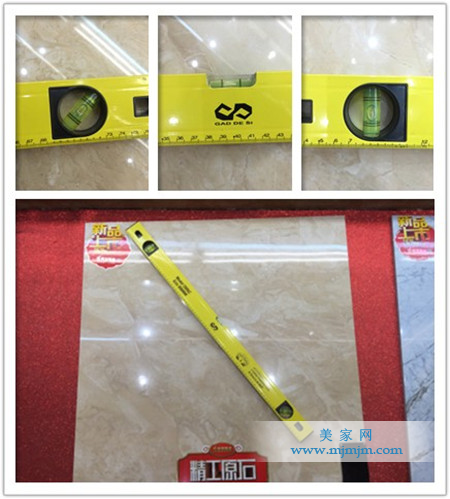 一塊好的瓷磚無論是鋪在地上還是貼在墻上,它的平整度至關重要,平整度不過關就會造成日后房屋出現(xiàn)空鼓、翹起等現(xiàn)象。我們美家測評員在這款琥珀黃噴墨拋光磚上找準點,然后把水平尺放置在上面,倘若水平尺三點水珠都平均位于中間的位置,就表示這款瓷磚的平整度好。經測試得出下圖的結果,均未超出標準范圍,所以琥珀黃噴墨拋光磚的平整度非常好。