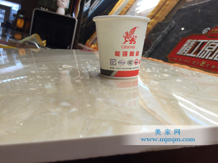 地面瓷磚的防滑是很重要的,尤其對于家庭中有老有小的消費者來說尤為看重。下面就讓美家測評員來測試一下琥珀黃噴墨拋光磚的防水性,我們現(xiàn)在傾斜的瓷磚表面上灑滿水,然后把一個裝滿水的杯子立在上面,觀察幾分鐘,發(fā)現(xiàn)杯子并沒有在瓷磚上出現(xiàn)滑行的現(xiàn)象,精工原石產品防滑性能強。