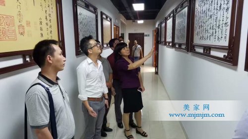 除了參觀產品外,來賓們還參觀了四樓用LA’BOBO陶瓷薄板加工出來的書法作品,副市長一行都贊不絕口,沒想到使用先進技術研發而成的新型環保建材產品與傳統的書法藝術結合起來竟是如此的惟妙惟肖,大家紛紛拿起手機拍照留念。