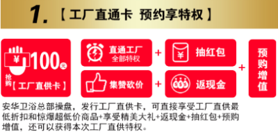 鉅惠一、工廠直通卡,預約享特權(quán):10月7日,憑卡到活動現(xiàn)場簽到,免費領(lǐng)取安華衛(wèi)浴精美禮品一份。