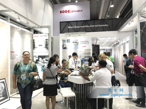 博德以連續(xù)六年自主品牌出口額穩(wěn)居第一的成績拓展自身品牌國際實力,已然形成“出口國家多、出口數(shù)量大、出口比例高”等博德特色。本次展會,博德展位融合了佛山總部營銷中心新推出的精工瓷石輕奢館的“奢而不侈、張而不揚”主義風(fēng)潮設(shè)計感,時尚簡約的設(shè)計風(fēng)格,巧妙運用設(shè)計,充分利用通道而擴(kuò)大了展位的空間感,搭建出具有國際風(fēng)范的建筑風(fēng)格的展位。
