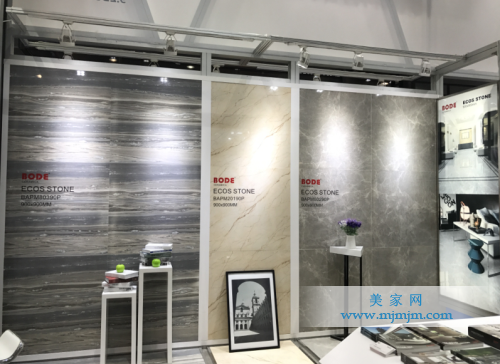 博德展位上以釉面類產(chǎn)品為主,包括拋釉磚和仿古磚,紋理主要是仿石材、木紋和水泥仿古等,工藝與展示方式仍延續(xù)模具、印花、干粒、亮光墨水、柔拋、亮光、自然面等復(fù)合疊加工藝,產(chǎn)品在工藝、規(guī)格和顏色的把控上充分展示其優(yōu)勢。