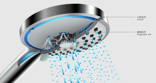 此外,安華衛浴系列花灑產品應用“富氧”潔凈核心技術,特別為產品添加的水氧融合組件,將空氣注入到水流中,空氣和水的比例達到1:2,相對普通花灑節水30%。環保節能的同時,清潔效果依然出色,富含氧離子水流沖在皮膚上也更為柔和舒適。