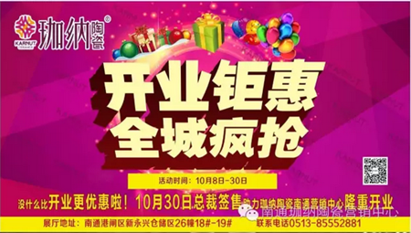 又是一年金九銀十,樓市火熱,裝修旺季,也正值南通珈納營銷中心開業(yè)之際,為了感恩回饋新老客戶,總部品牌老總10月8日-30日親臨現(xiàn)場給大家開倉放價,只要數(shù)量,不要利潤!只要數(shù)量,不要利潤!只要數(shù)量,不要利潤!重要的事情,說三遍!