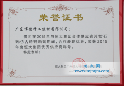 廣東博德精工建材有限公司榮獲恒大集團(tuán)“優(yōu)秀戰(zhàn)略合作伙伴”稱號