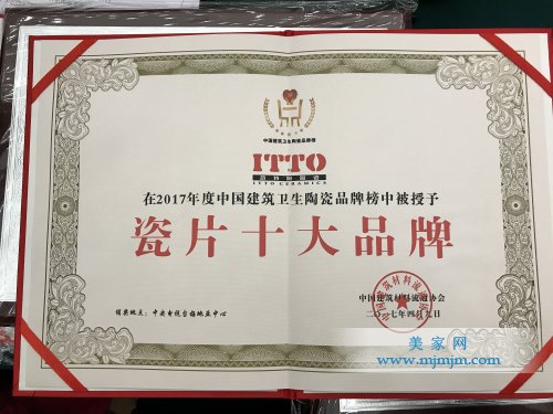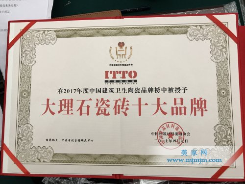 意特陶陶瓷在頒獎盛典中,憑借高品質的服務和科技質造的領先產品,斬獲殊榮,榮膺“瓷片十大品牌”和“大理石瓷磚十大品牌”獎項。