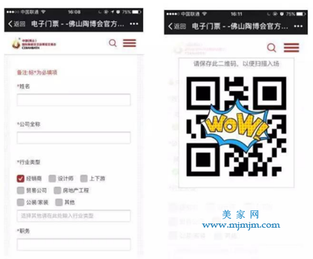 填寫個人信息后提交,成功注冊,獲得專屬二維碼,即可快速取證入場!同時,默認擁有佛山陶博會會員身份,享受系列的優惠與服務
