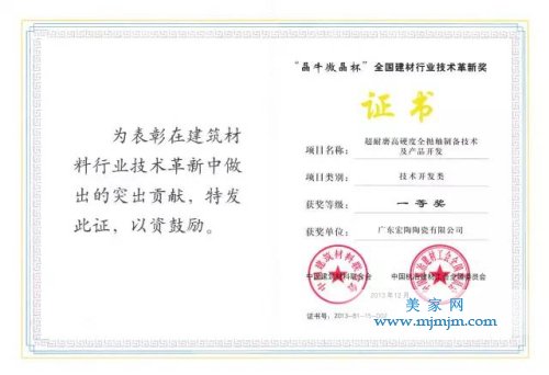 行業首例“高清三維釉面磚印刷技術”在宏陶公司研發成功,解決了瓷磚凹凸面印刷的復雜問題,為行業產業的升級提供技術支撐。該產品具有“綠色”特性,產品在原材料中吸收了40%以上的陶瓷工業廢渣,達到國內外生產高檔建筑陶瓷材料的最高廢渣回收利用量,是不可多得的綠色產品。