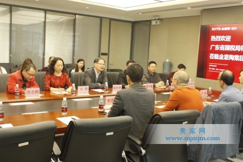 2017年4月14日下午,廣東省國稅局副局長梁世桃,廣東省國稅局國際處副處長劉麗,佛山市國稅局副局長黃濟敏,禪城區國稅副局長陳志楓等一行人蒞臨金意陶集團總部調研指導工作,在金意陶集團副總經理王竹、朱煒煜先生的陪同下,參觀金意陶展廳及辦公大樓并召開座談會,了解2017年金意陶生產經營情況。