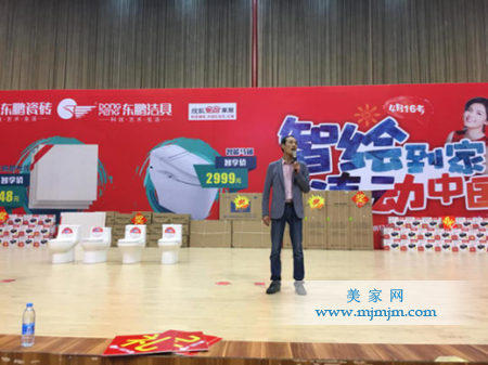 【圖為:佛山東鵬潔具股份有限公司河南運(yùn)營(yíng)中心總經(jīng)理彭昕先生現(xiàn)場(chǎng)公布優(yōu)惠政策】