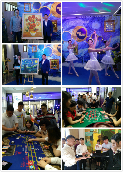 看瓷磚、品美酒、賞音樂,2017年4月17日晚,還有一場美妙華麗的梵高·星空之夜酒會將在梵高瓷磚總部展廳華麗綻放。這是一場美酒、美食與音樂的狂歡party,除了精彩的歌唱舞蹈演出、奇妙的魔術表演和party queen評比,還有精心策劃的拉斯維加斯星空賽。現場設有三個賭桌,來賓們可以拿著星空幣小賭一把,并可以憑借著贏取的星空幣換取禮品。在酒會上,我們還精心挑選了十幅最具意義的梵高作品進行拍賣,并將款項捐入“梵高藝術研究院”作為研究經費!