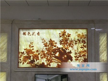 2017年初春,“潤芝堂”正式推出第一款帶動感光效的“智能天然玉石背景墻”。經(jīng)公司研發(fā)設計部門的不斷探索、大膽創(chuàng)新,綜合了燈光發(fā)光原理和利銘專利復合玉石透光屬性,實現(xiàn)了天然玉石的動感透光效果,使玉石背景墻大放異彩。