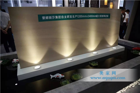 在展廳中央,更以庭院水池為設計藍本,別出心裁地亮相了蒙娜麗莎自主研發的1200x2400mm超大規格陶瓷板。