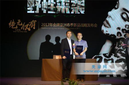 神器一出,群雄聯(lián)盟!金牌亞洲磁磚值新品發(fā)布會(huì)的契機(jī),攜手國(guó)際著名建筑師及室內(nèi)設(shè)計(jì)師劉亮週、亞太酒店設(shè)計(jì)協(xié)會(huì)河南分會(huì)、中創(chuàng)美巢互聯(lián)網(wǎng)科技公司進(jìn)行年度戰(zhàn)略合作,并舉行了隆重簽約儀式,拉開(kāi)了金牌亞洲2017年全面拓寬渠道布局,重點(diǎn)聚焦設(shè)計(jì)師渠道和整裝渠道的帷幕。