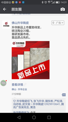 升華陶瓷19年歷史,19年輝煌,而微時代信息的傳播速度更快、傳播的內容更具沖擊力和震撼力。騰訊新媒體正以“第一城市門戶”作為自己的定位目標。此次升華陶瓷與騰訊新媒體合作,無疑能奪得先機,更好地為企業品牌做好宣傳、推廣,更能擴大品牌知名度,影響傳統銷售渠道。