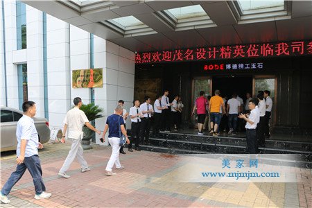 5月23日下午兩點,眾位設計師頂著炎炎烈日來到佛山博德總部,在設計部精英及各位同事的引導下,參觀了博德精工玉石奢華館,精工瓷石輕奢館及精工磁磚精致館的各類產品,其中最具有設計感的意大利LEA進口薄板成為當日焦點,數位設計師對做工精美、超大尺寸、超薄厚度的薄板贊不絕口。
