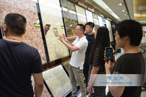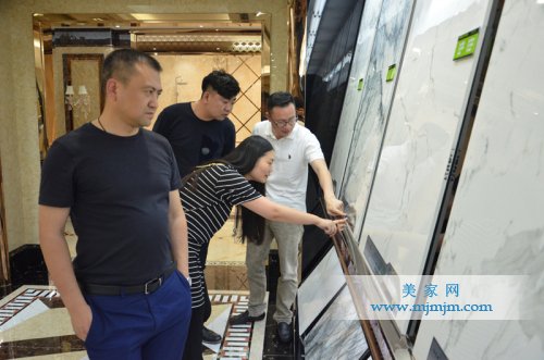 大漢瓷磚品牌銷(xiāo)售總經(jīng)理與紅星美凱龍領(lǐng)導(dǎo)參觀(guān)大漢產(chǎn)品