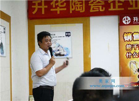 培訓會開始,先由升華陶瓷營銷副總經理武文俊先生上臺為大家作分享和講解,武總從自身所接觸的案例進行分析,結合行業現狀及實際情況出發,詳細講解了工作和生活中積極態度的作用,并且提出了效用/欲望的幸福公式,給大家振聾發聵的警醒作用。武總運用生動的語言和詼諧幽默的演講方式,給大家作了一個很好的示范。