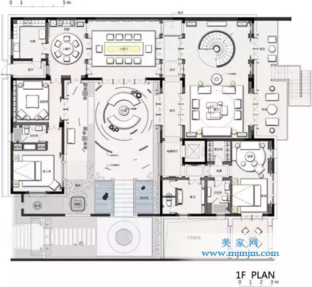 在一樓平面上除了看到圓形樓梯空洞以外,